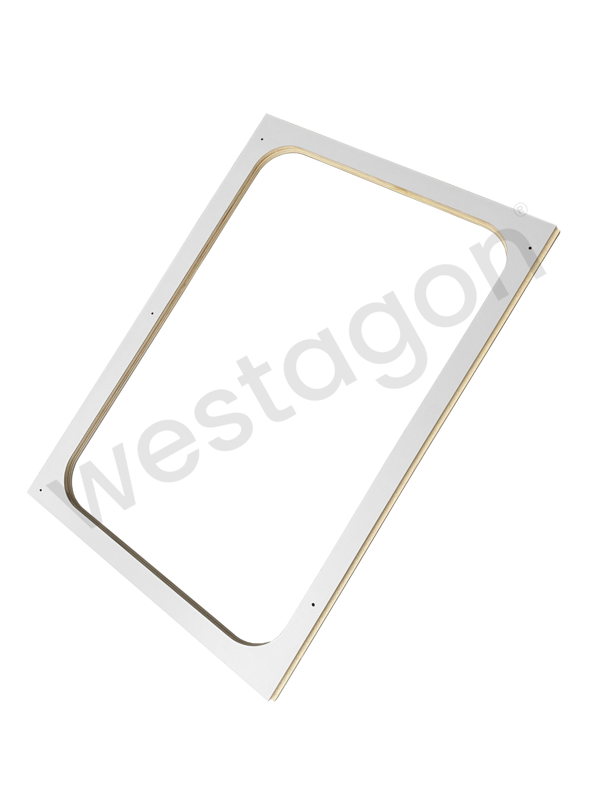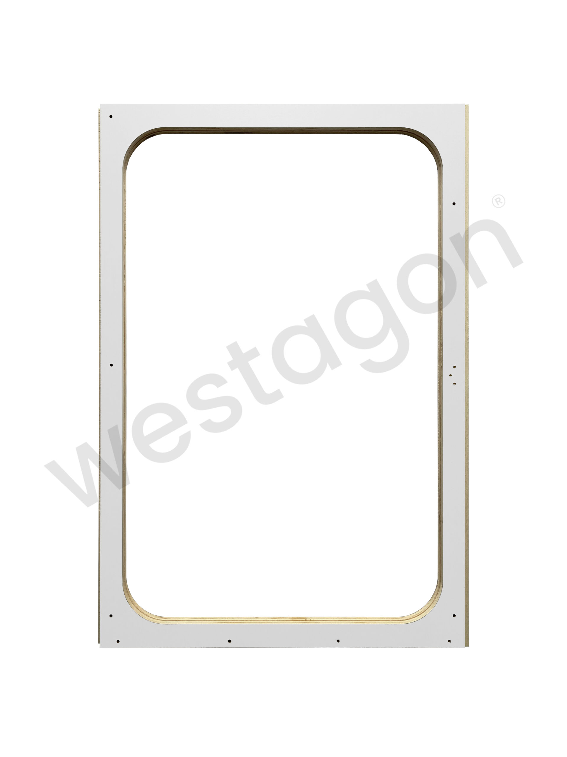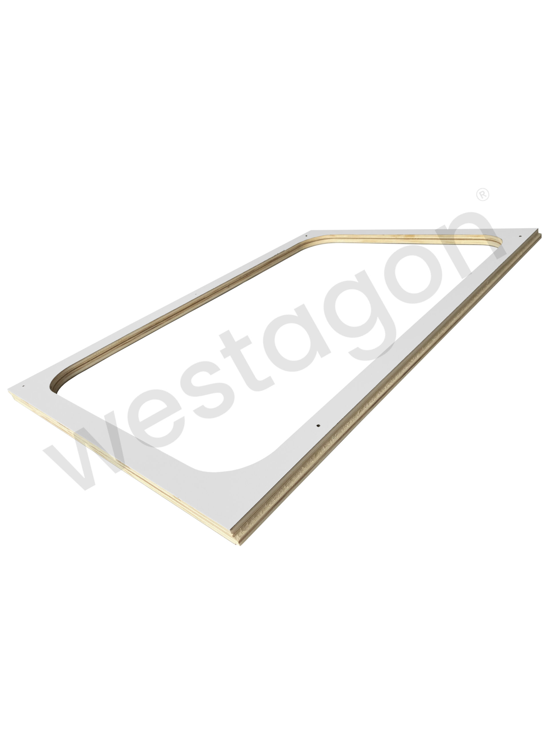 Der graue Rahmen für die Kühlschranktür des Küchenblocks für die VW T3 Westfalia Ausstattung als hochwertige Nachfertigung aus unserem Haus.