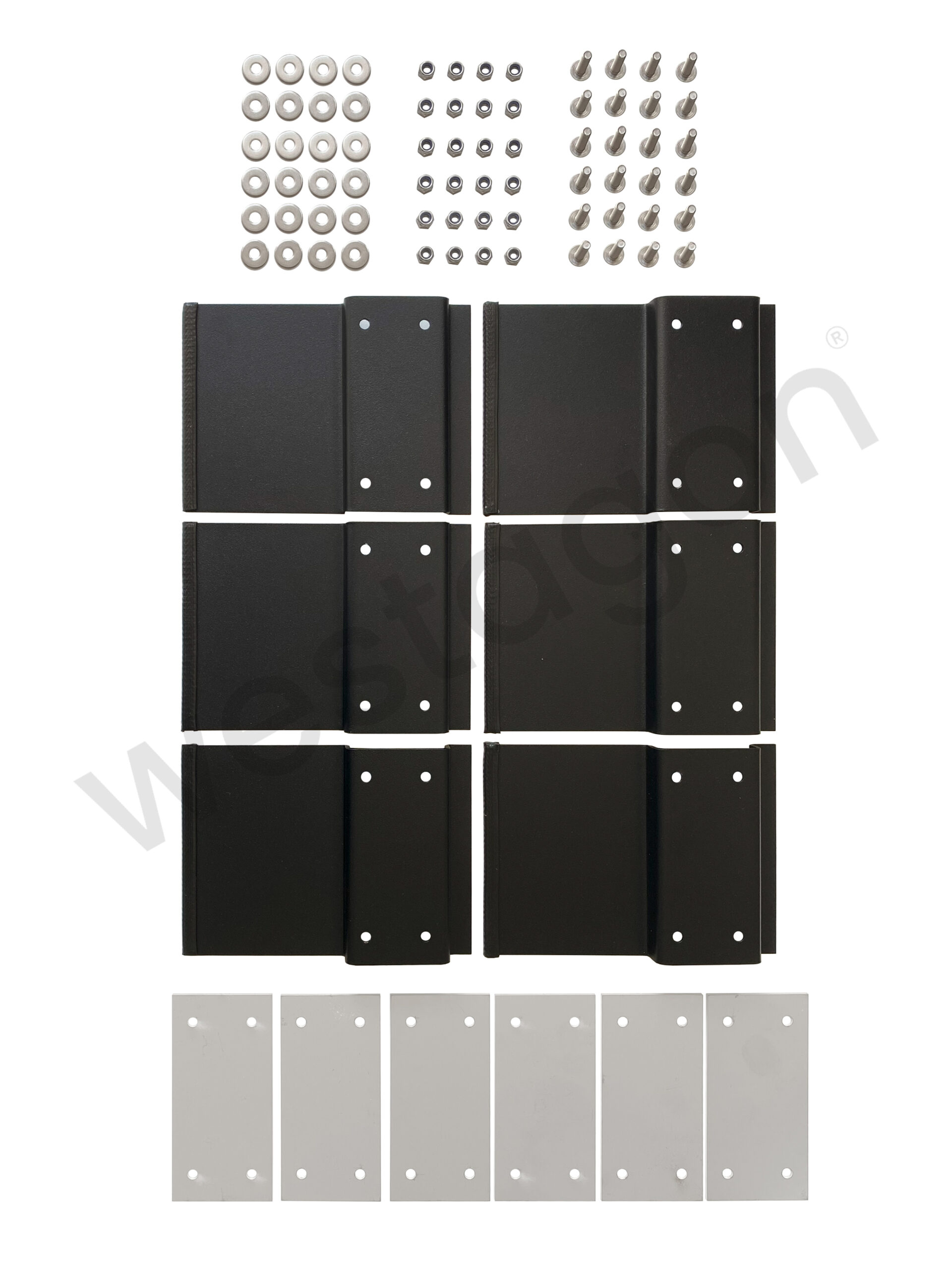 Das Schwerlasthalter-Set zur universellen Montage eines Gepäckträger-Systems auf dem Aufstelldach von WESTFALIA oder RHEIMO besteht wahlweise aus entweder 6 Stk., 4 Stk., 2 Stk. oder 1 Stk. Haltern und ist aus 2,5mm starken Edelstahlblech gefertigt. Zusätzlich werden die Halter mit unserer schwarzmatten Struktur-Beschichtung pulverbeschichtet, welche den perfekten Schutz vor Ästen oder Steinschlägen im schweren Gelände bietet. Auf der Innenseite werden die Gepäckträgerhalter jeweils zusätzlich mit einer 3mm starken Edelstahlplatte gekontert, damit diese das GFK vor Beschädigung schützt und selbst im schweren Gelände, die dort wirkenden Kräfte aufnehmen und gezielt ableiten kann.