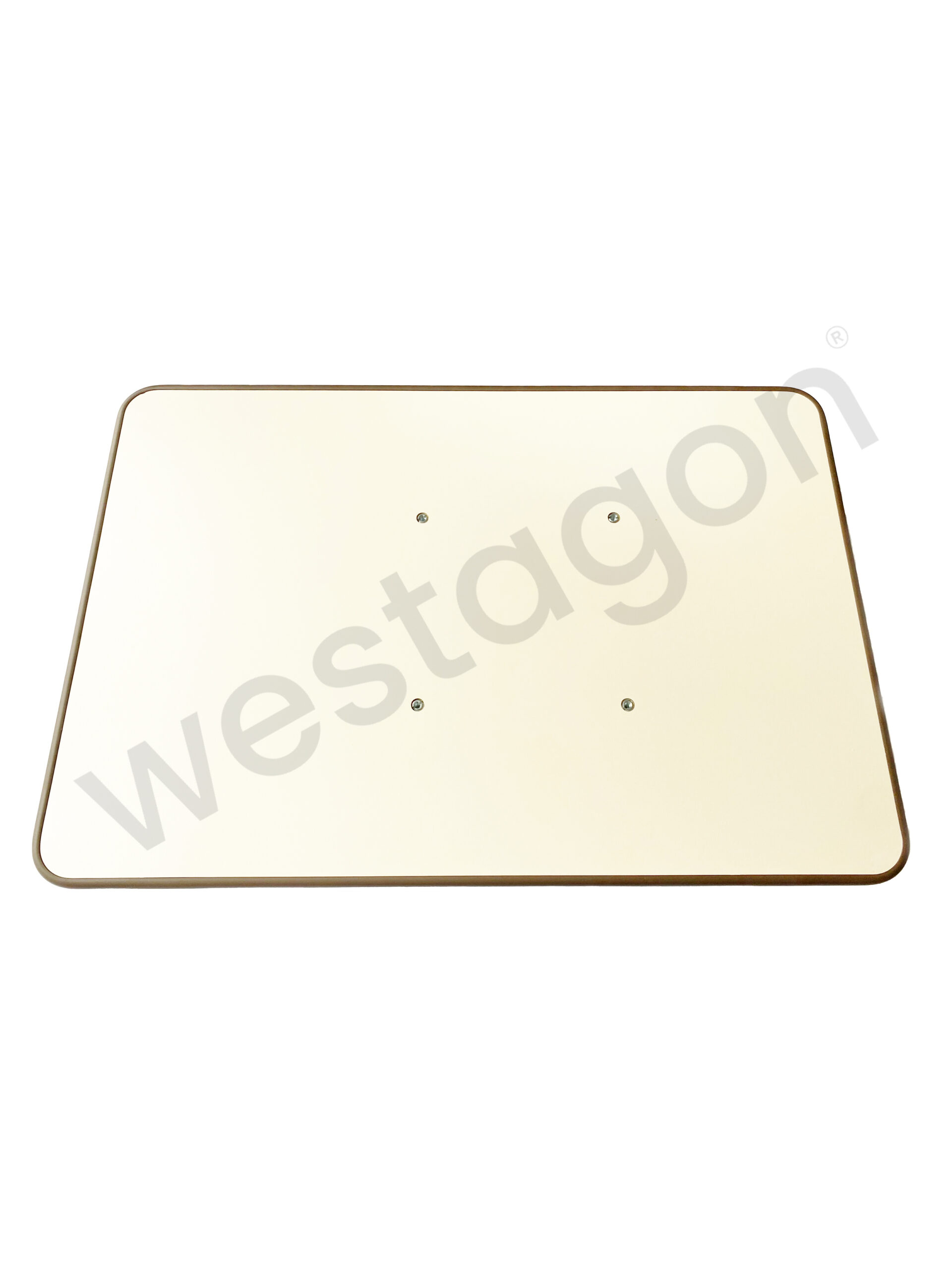 Die Tischplatte ist in Form, Farbe und Abmessungen eine perfekte Reproduktion der originalen Westfalia Tischplatte und verfügt über den umlaufenden braunen Keder sowie die zur Befestigung benötigten Einschraubmuttern.